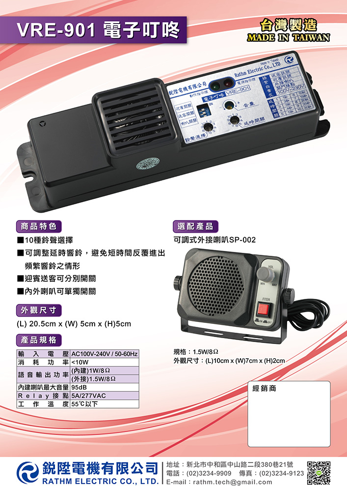 2. 可調整延時響鈴,避免短時間反覆進出頻繁響鈴之情形